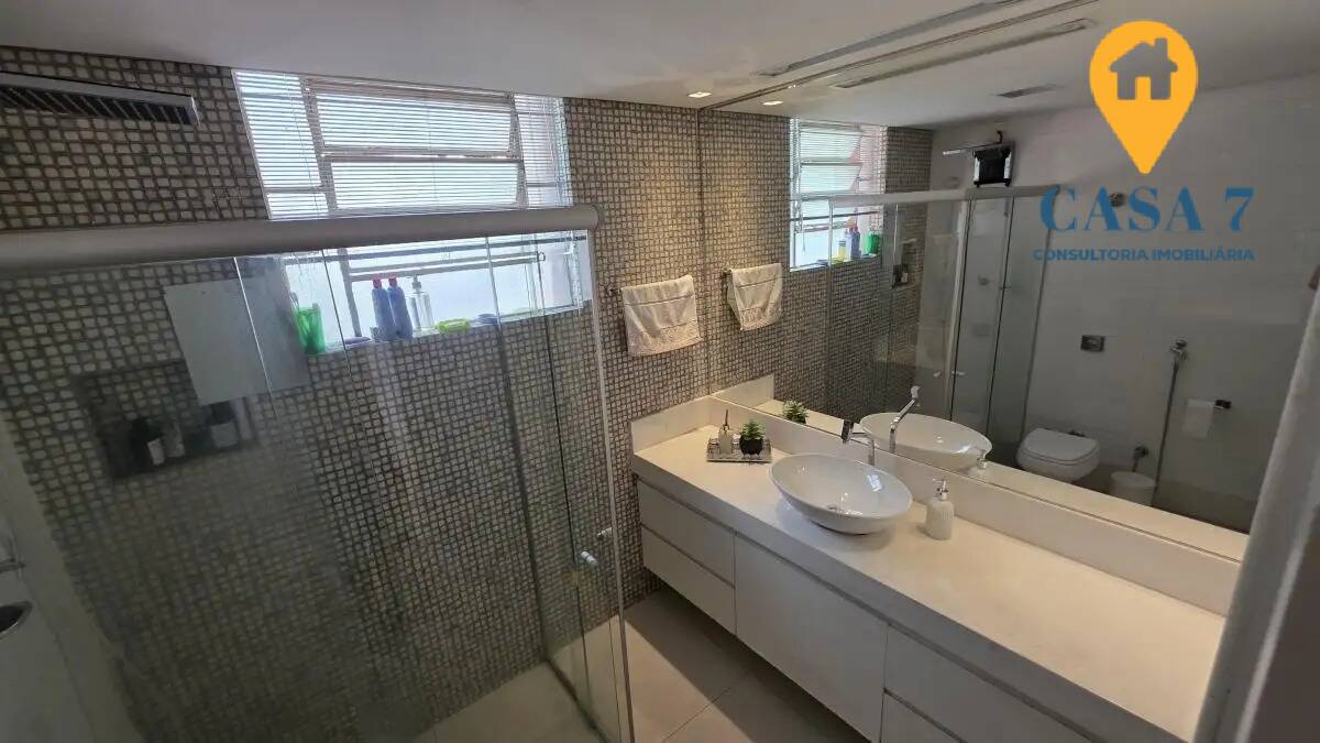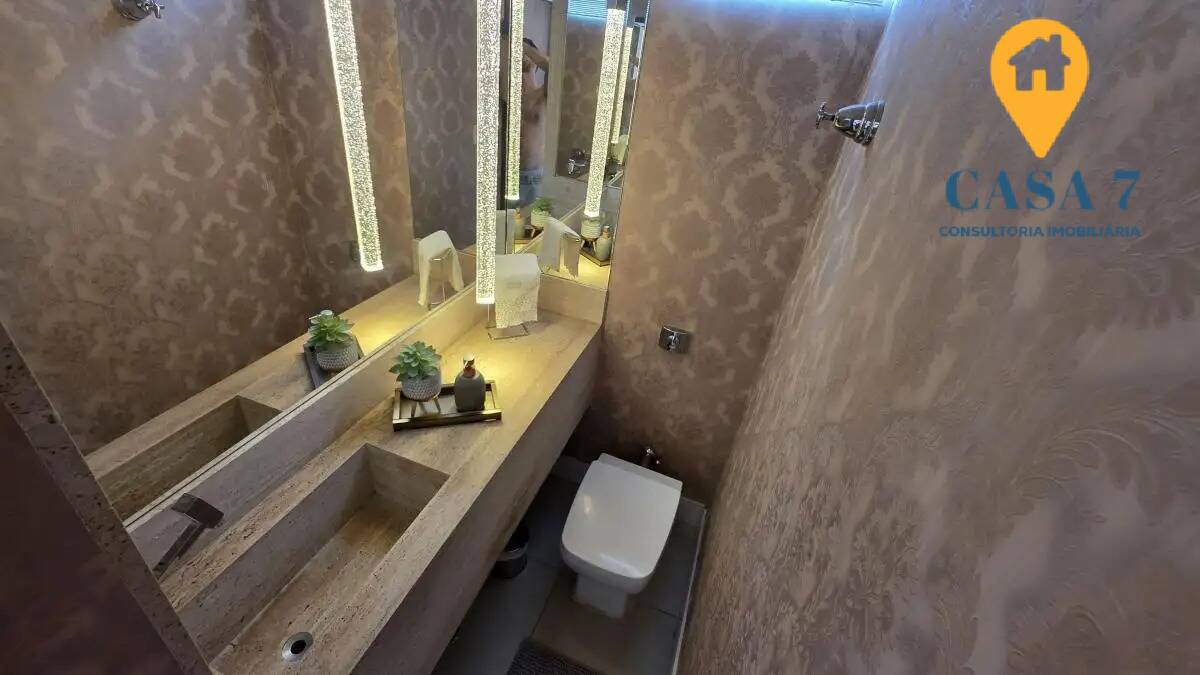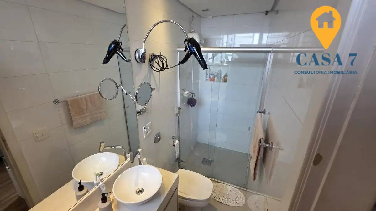 Banheiros (social e suítes) com acabamento de qualidade e box em blindex.