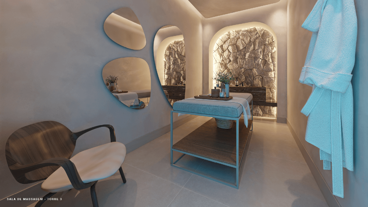 Sauna, espaço de relaxamento e sala de massagem