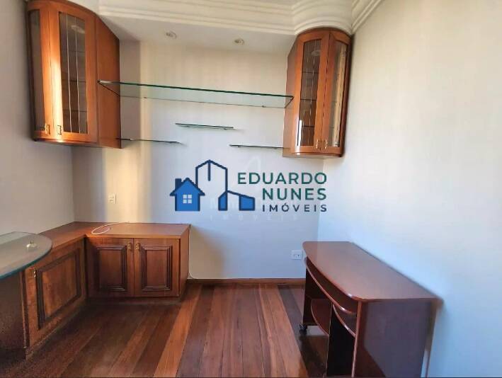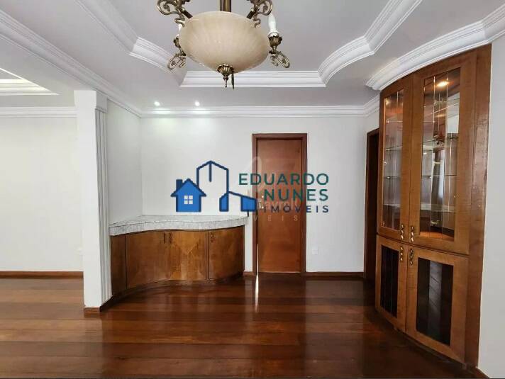 Apartamento amplo, claro e arejado, com 121,57 m², muito bem conservado, 02 salas separadas com cristaleiras, são 04 quartos com armários, sendo uma suíte, banho social e da suíte com armários, box e espelhos, com acabamentos em granito e cerâmica, pisos das salas e quartos em tábua corrida, cozinha ampla, clara e arejada com armários, área de serviço com armários, dependência completa para empregada, pisos das partes frias em granito e acabamentos em cerâmica.