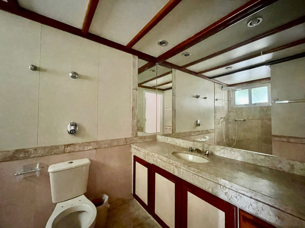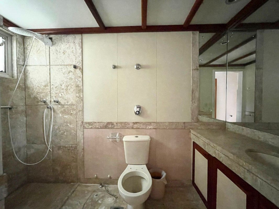 1 Sala ampla para dois ambientes com piso em tábua corrida e teto com acabamento com moldura em gesso 4 Quartos amplos, todos com armários, piso em tábua corrida, sendo uma suíte com bancada em granito, espelho e box em blindex Cozinha espaçosa com piso e bancada em granito e armários planejados Banheiro social com espelho, bancada em granito, armários, bide, banheira e box em blindex Lavabo com bancada em granito DCE Área de serviço com tanque e armários 2 vagas de garagem cobertas e demarcadas
