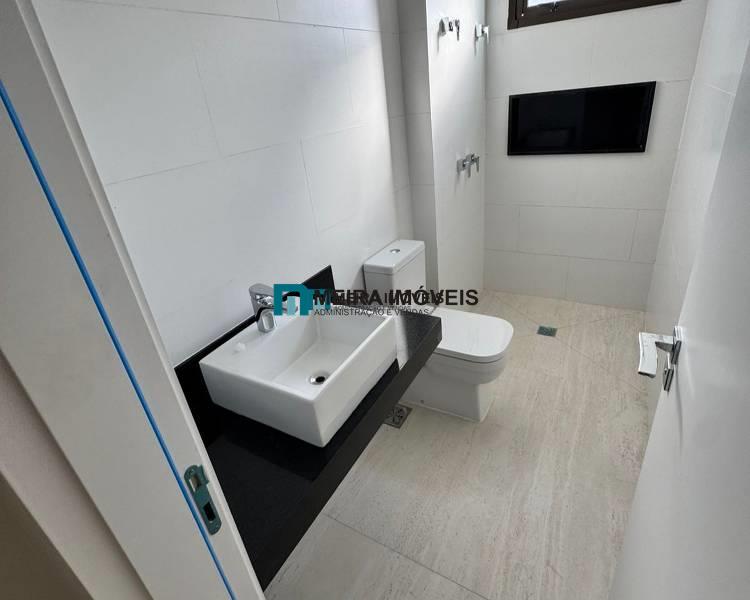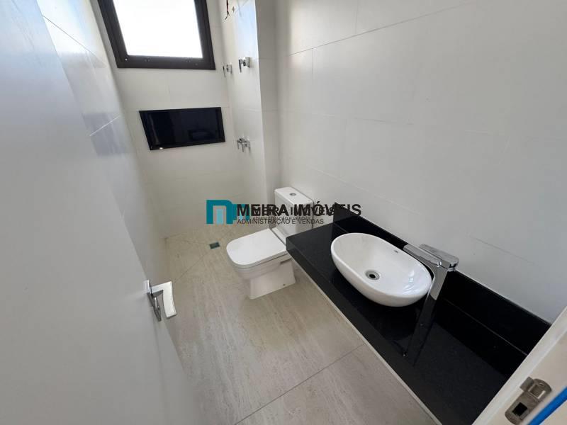 4 quartos amplos, todos com piso vinílico amadeirado, sendo duas suítes com bancada em granito e pia em cuba de apoio, e duas semissuítes com bancada em granito (compartilhada pelos dois quartos)