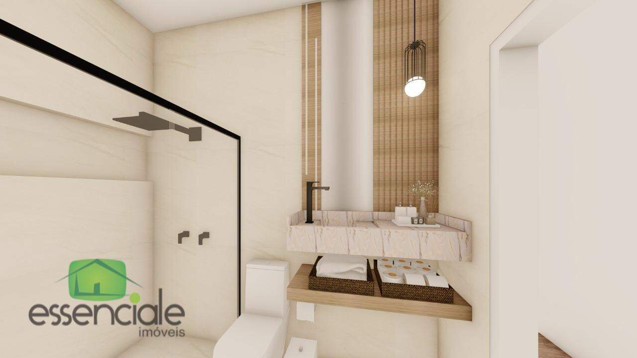 03 quartos sendo uma suíte master, e dois quartos de solteiro e Banheiro social.
